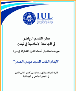 The Islamic University of Lebanon team won the Martyr Hassan Kassir sports tournament for universities held by the Youth and Sports Office in the Amal Movement, Jabal Amel Region, against the University Technical Institute team – a 7-3 battle over the Hobbs stadiums – Tyre