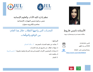 The Faculty of Arts and Humanities, especially the Department of Psychology, invites you to attend a seminar entitled: Challenges faced by students during this year: between reality and expectations on Monday, June 21, 2021 at 5:00 p.m. Beirut time via zoom app. The invitation is addressed to students and professors.